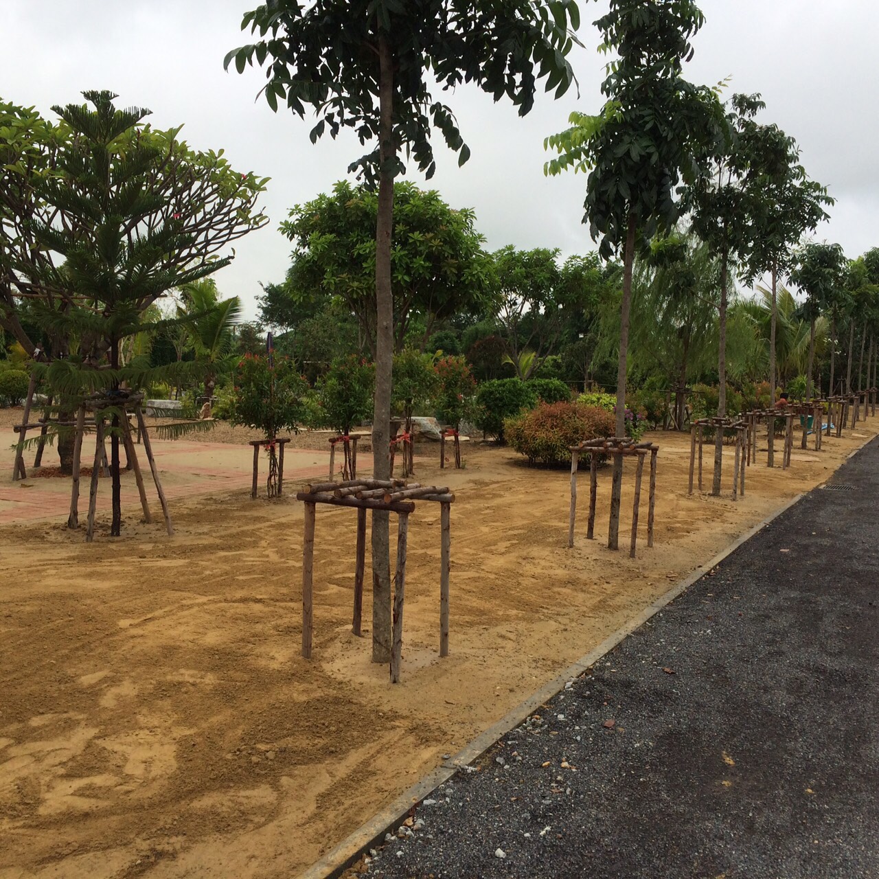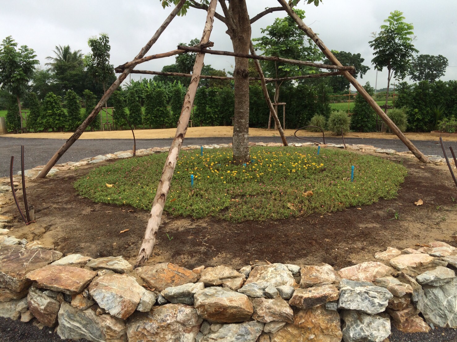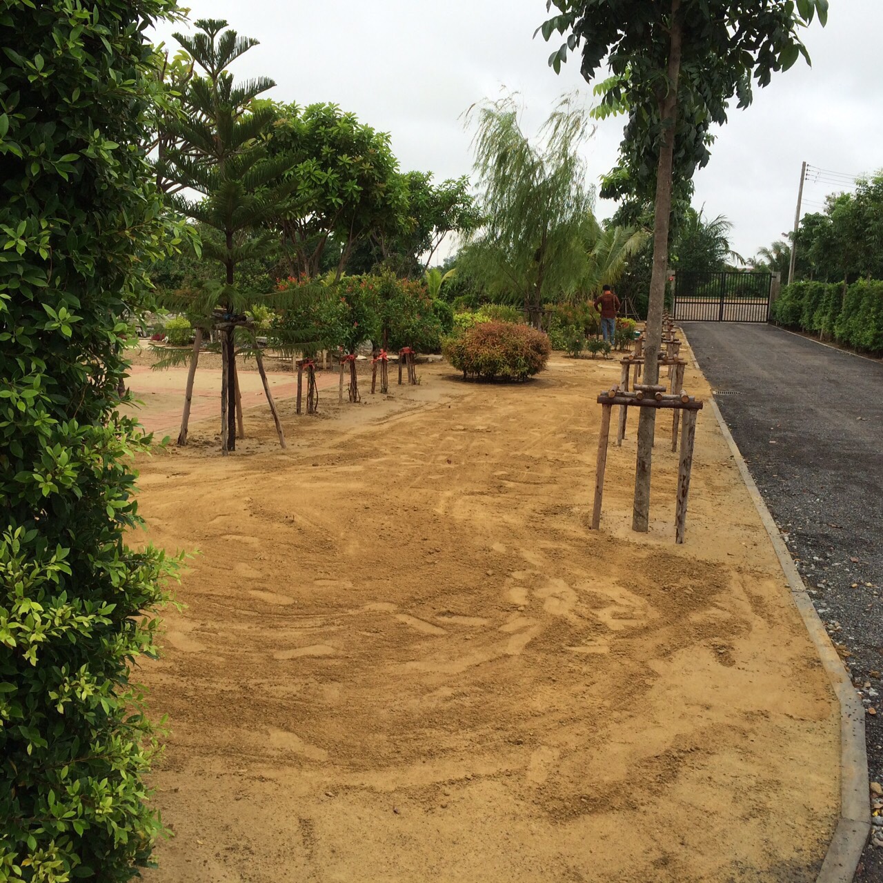 ผลงานการปรับที่ปูหญ้านวลน้อย3000ตรม ที่โรงไฟฟ้าอมตะนคร ปลูกต้นสน 200ต้น จัดสวนหย่อม |